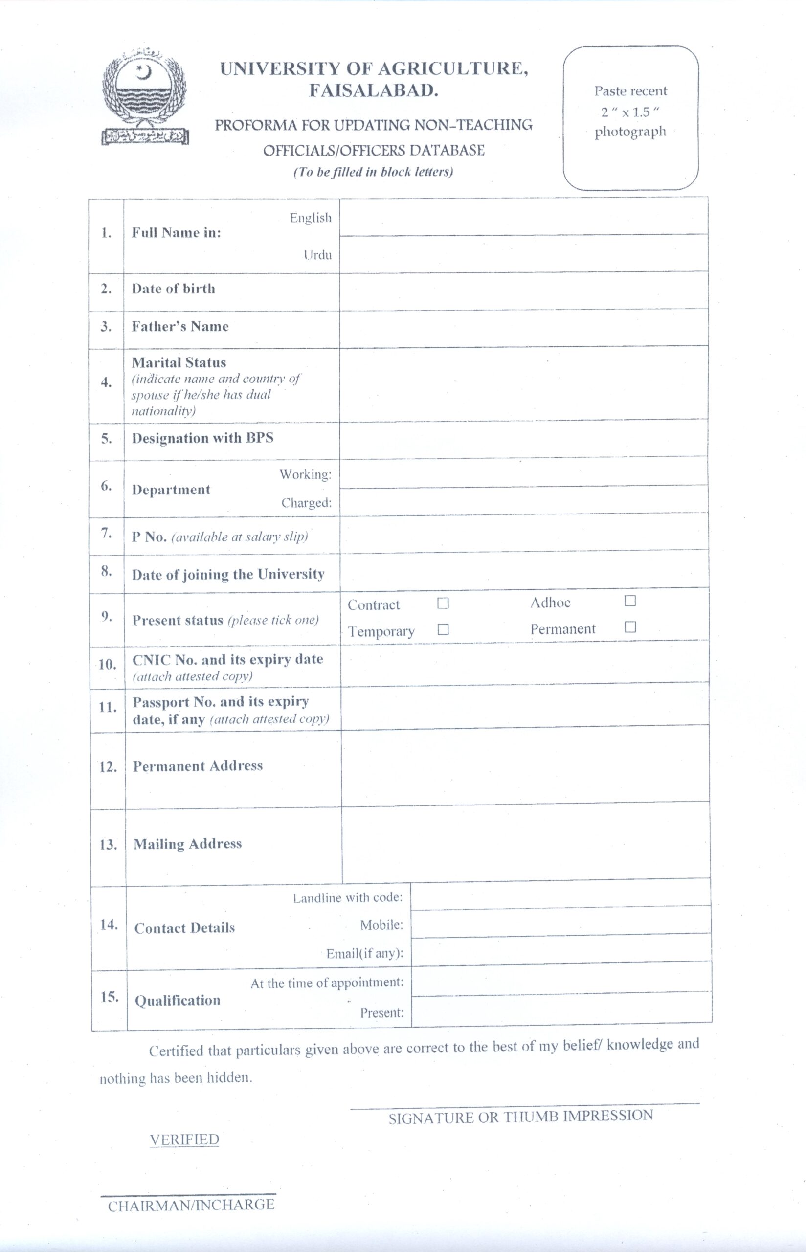 Verification of Degree/Diploma/Certificate/Transcript form (Within Pakistan)